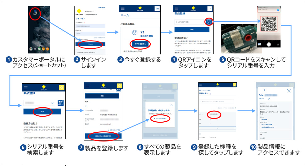 | 横河電機独自のQRコードの貼付製品をカスタマーポータルへ登録する手順を教えて下さい。 | ||